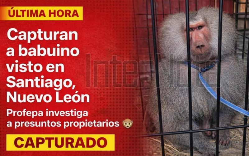🚨 Autoridades ya investigan el origen del animal y posibles responsables, mientras permanece bajo resguardo para su revisión. 🐒 SantiagoNL...