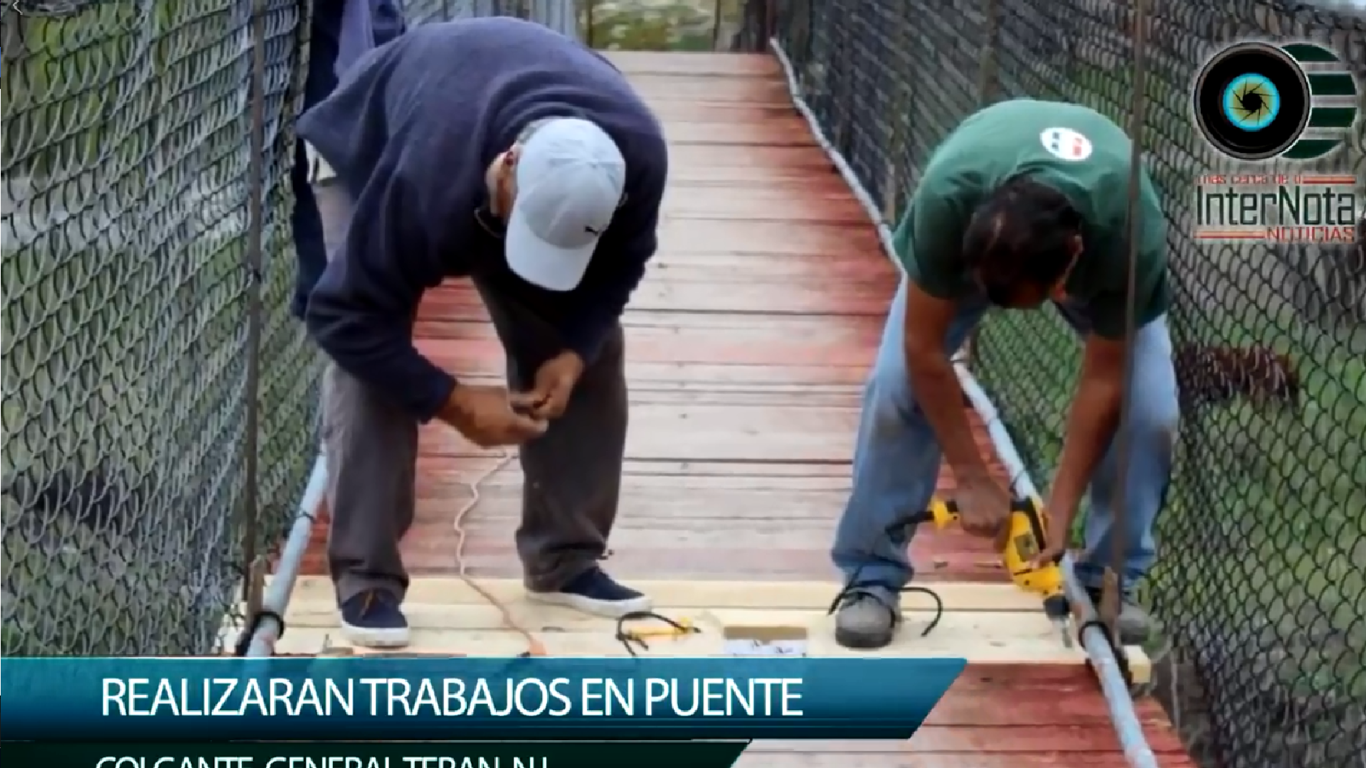 REHABILITAN PUENTE COLGANTE. Gral. Terán.- El personal de Servicios Primarios estuvo presente en el puente colgante que une a la...
