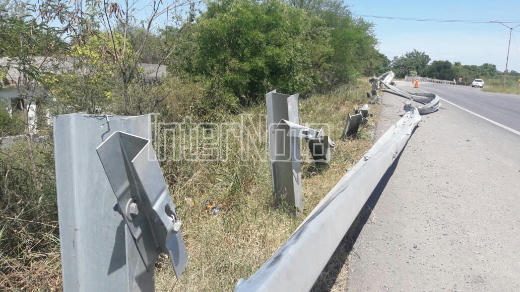 Montemorelos. – Luego de que presuntamente un tracto camión que circulaba a la altura del kilómetro 207 sobre la carretera nacional en dirección de norte a sur, sufriera una falla mecánica el conductor del vehículo de carga pierde el control por lo que se impacta con la valla de seguridad lo que provoca que pierda un neumático, quedando sobre el camellón central.