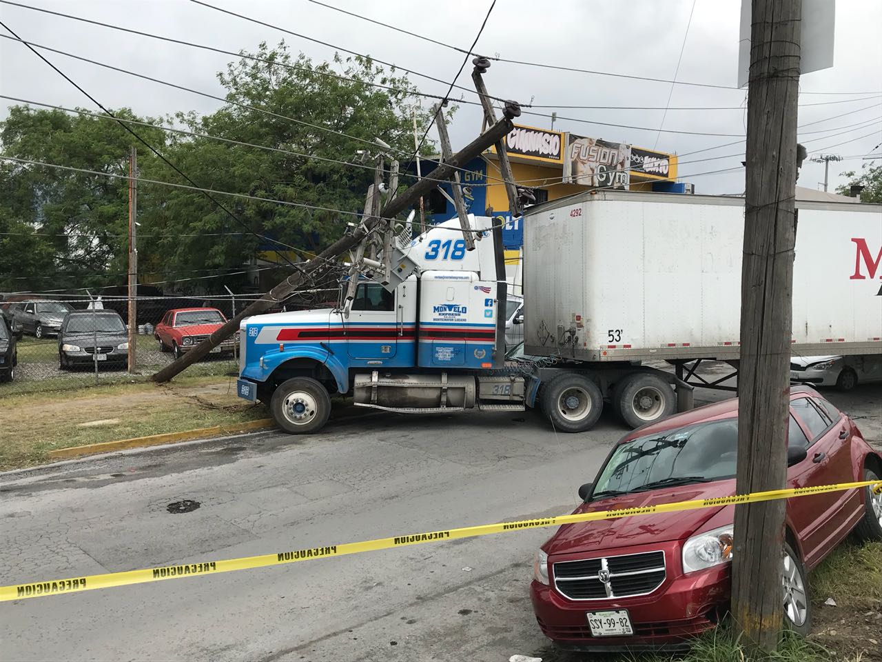 TRÁILER DERRIBA TORRE DE ALTA TENSIÓN.