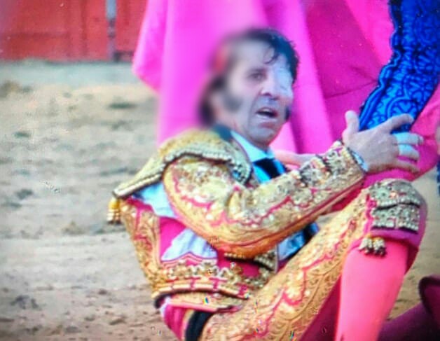 TORO ARRANCADO EL CUERO CABELLUDO AL CÉLEBRE TORERO ESPAÑOL JUAN JOSÉ PADILLA DURANTE UNA CORRIDA EN ESPAÑA.
