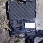 Minutos después cuando los oficiales inspeccionaron la motocicleta encontraron también un estuche en color negro con un arma automática de la marca Intratec un cargador y cartuchos, esto en la calle hidalgo entre modesto Arreola y Cuauhtémoc.