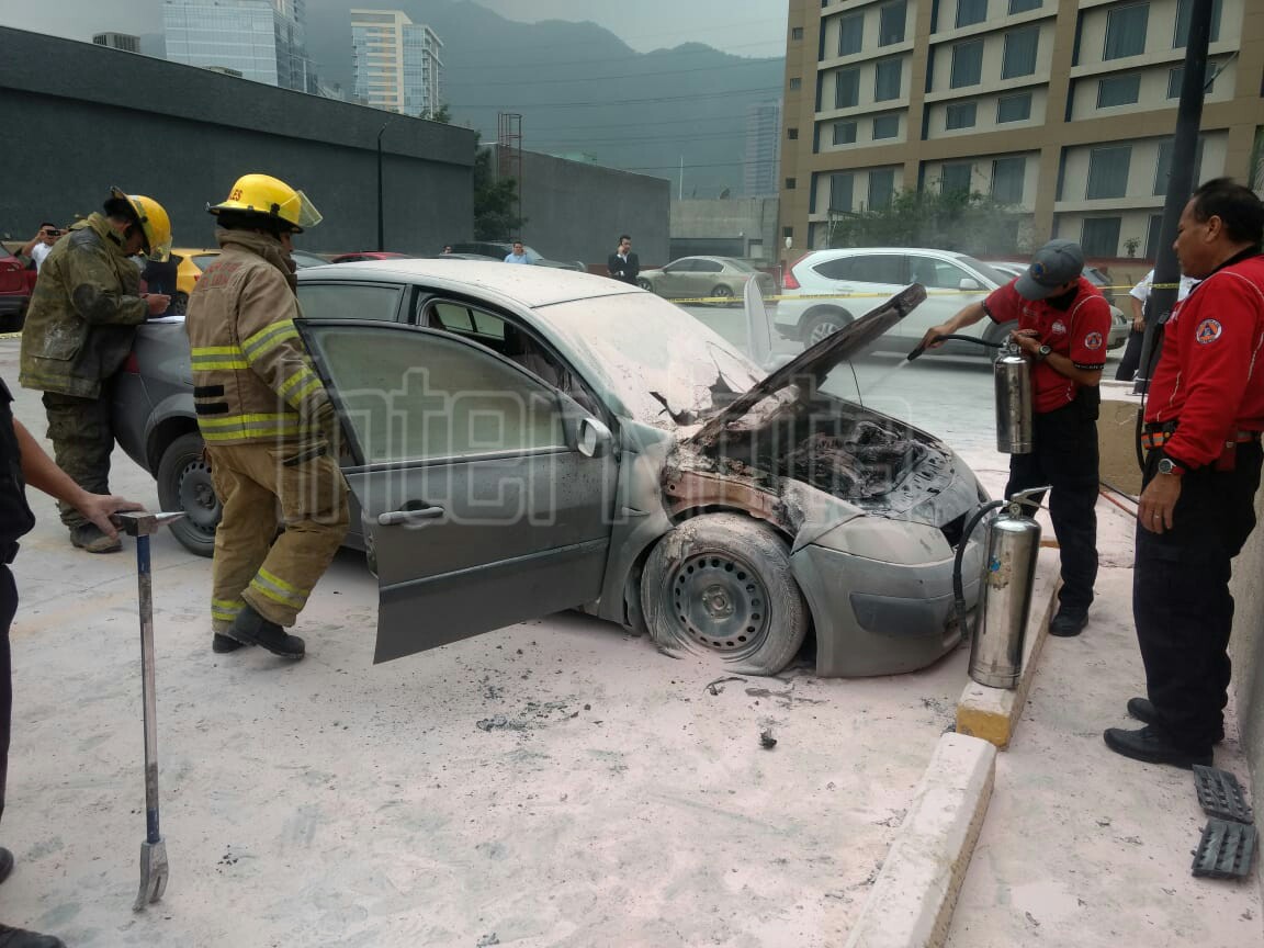 SE INCENDIA VEHÍCULO EN ESTACIONAMIENTO San Pedro. – Un incendio de un vehículo tipo Renault Megane color verde causo la...