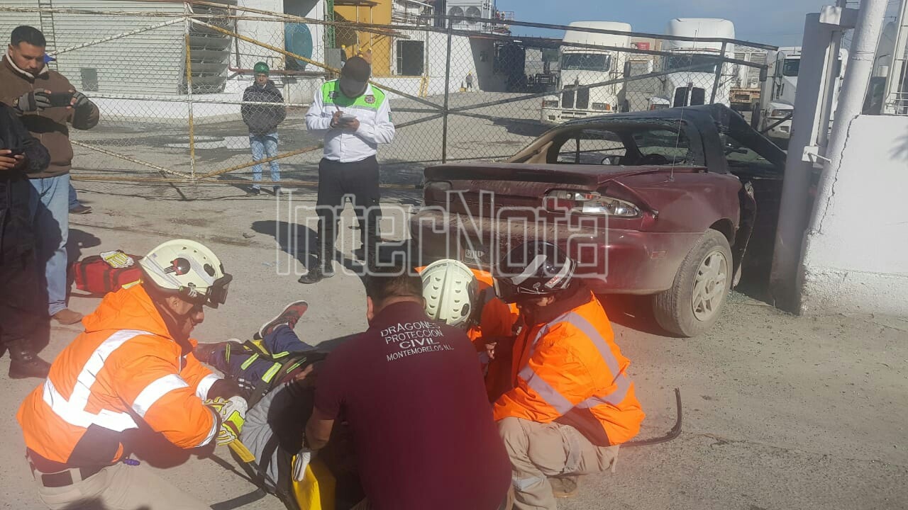 Montemorelos_ Los hechos ocurrieron sobre la calle Cauchutemoc en su cruce con la calle Frontera donde una persona la cual no ha sido identificada resultó lesionada tras impactar el vehículo en el que viajaba contra el portón de la entrada principal de una empacadora por causas que hasta el momento se desconocen.