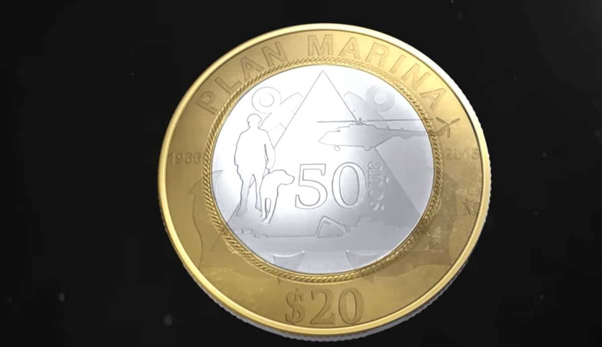 SACAN MONEDA DE 20 PESOS CONMEMORATIVA DE LA MARINA, CON UN BINOMIO CANINO El Banco de México puso en circulación...