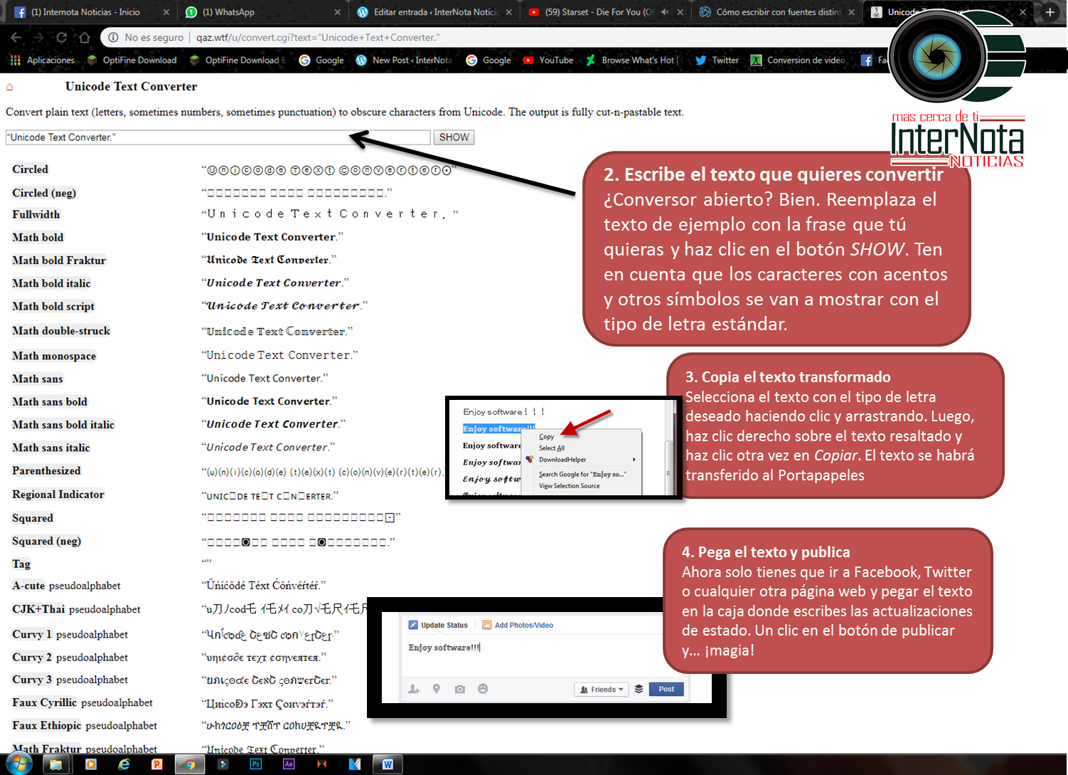 CÓMO ESCRIBIR CON FUENTES DISTINTAS EN FACEBOOK, TWITTER O YOUTUBE ¿Sabías que puedes escribir en Facebook, Twitter o YouTube usando...