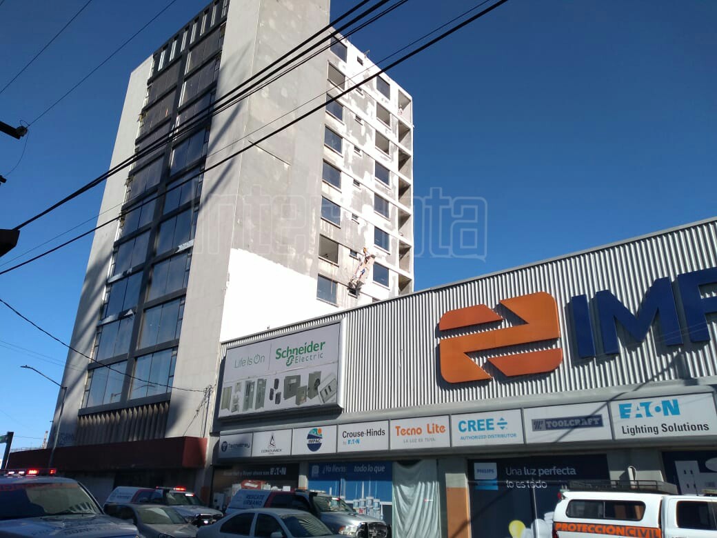 Monterrey. - Un andamio que se encontraba sostenido de un edificio estuvo a punto de caer al suelo tras sufrir...