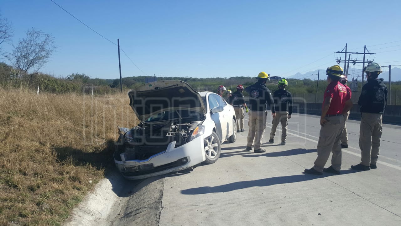 Allende.- Un accidente se registró sobre la Carretera Allende- Cadereyta a la altura de Cañada Honda, donde un vehículo presuntamente pierde el control, cae a un pozo y termina impactándose contra un talud que se encuentra en el área.