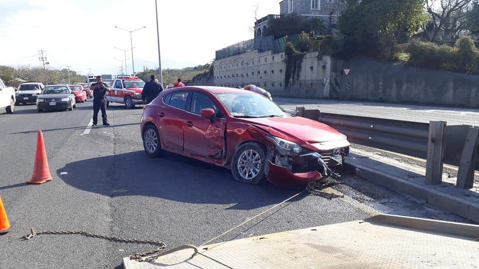 Santiago. – Un accidente vial se registró sobre la carretera nacional de Sur a Norte cerca de la comunidad el Barrial en donde participo un vehículo de reciente modelo en color guindo.