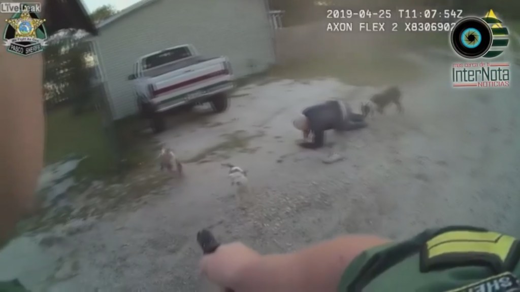 En el video de las Autoridades se puede ver como el anciano se encuentra tirado en el piso mientras es atacado por los canes y al intentar ayudar al hombre un agente de la Policía del Condado Disparo después de que también lo intentaran morder.