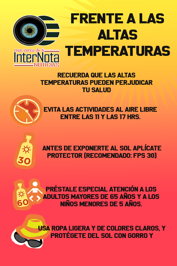 RECUERDA QUE LAS ALTAS TEMPERATURAS PUEDEN PERJUDICAR TU SALUD Evita las actividades al aire libre entre las 11 y las...