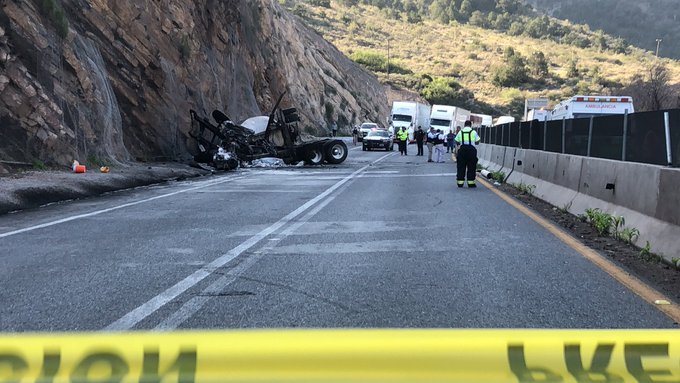 Arteaga, Coahuila.- Un fuerte accidente se registró sobre la Carretera 57 a la altura del km. 231 en el tramo conocido como “Los Chorros” donde un tracto camión presuntamente al perder el control termina impactándose contra un cerro, posteriormente comienza a incendiarse.
