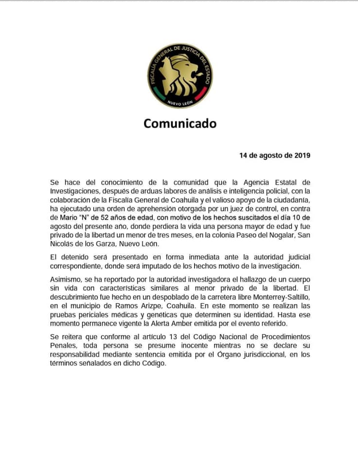 SE CONFIRMA LA DETENCIÓN DEL HOMICIDA DEL PEQUEÑO DEREK Y SU PADRE ÓSCAR.