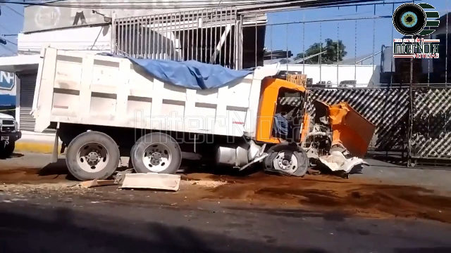 San Nicolás.- Un fuerte accidente se registró en López Mateos entre Nogalar y los Ángeles donde un camión de volteo al perder el control impacto a varios vehículos.