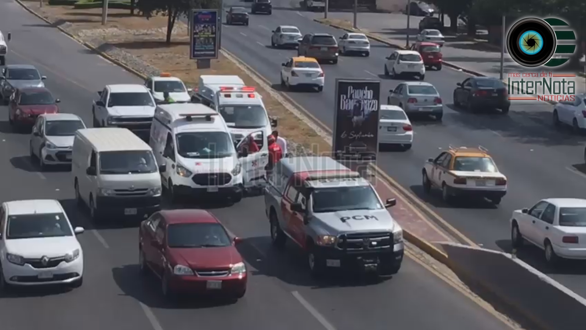 Monterrey.- Un accidente se registró sobre la Av. Fidel Velázquez donde participo una unidad de ambulancia privada y una camioneta.