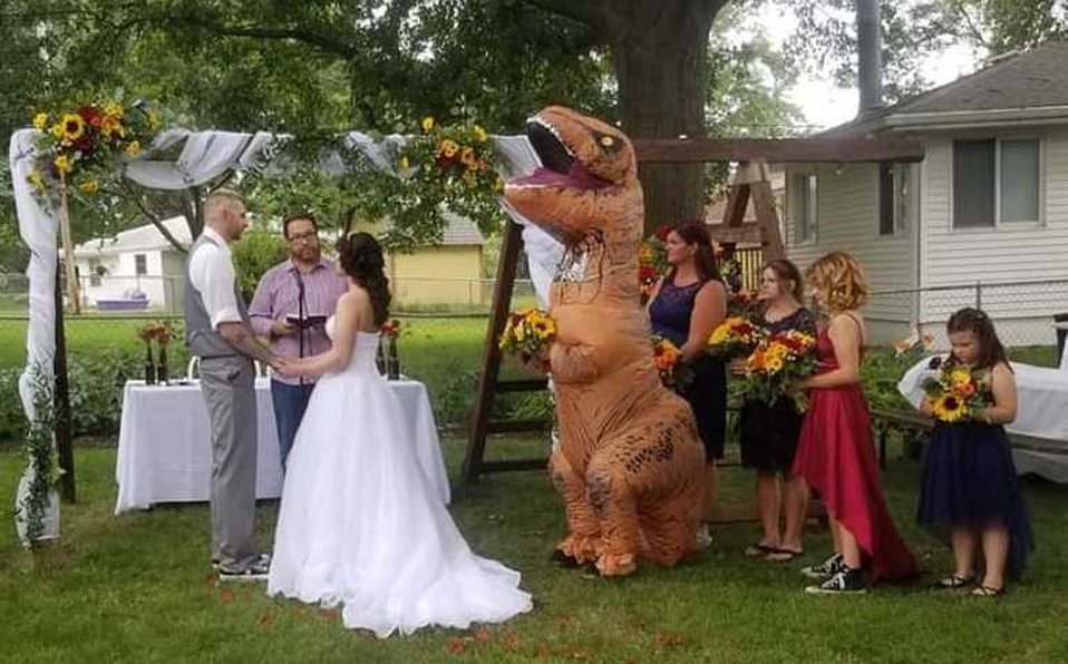 En un comunicado con Daily Mail comento que todo empezó con una broma, después ella también comento que en los detalles de la ceremonia ella le dijo a su hermana que se vestiría del famoso depredador jurásico T-REX su hermana no lo tomo enserio.
