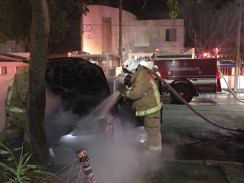 Montemorelos.- El incendio de un vehículo provoca la movilización de elementos de Protección Civil, los hechos se registraron en Calle Bustamante y Ocampo, cuando presuntamente una falla mecánica provoca que el auto Mazda color gris se incendiara, no se reportaron personas lesionadas.