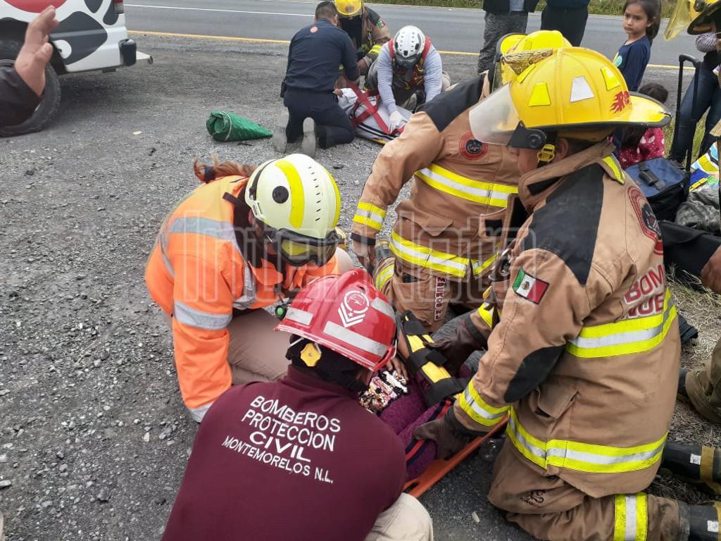 A los hechos arribaron elementos de Protección Civil Montemorelos, paramédicos de Cruz Roja Linares y Montemorelos, Bomberos Nuevo León y Protección Civil Linares, quienes atendieron a una familia donde viajaban 5 adultos identificados como Rosa Aguirre, Gabriela Aguirre, Casandra Alvares, Jessica Rodríguez y Guillermo Aguirre, así mismo a 6 menores de edad identificados como Daniela Aguirre, Nayasha Aguirre, Paulina Aguirre, Alan Aguirre y Bernardo Aguirre, quienes fueron trasladados hacia un Hospital para una mayor atención médica.