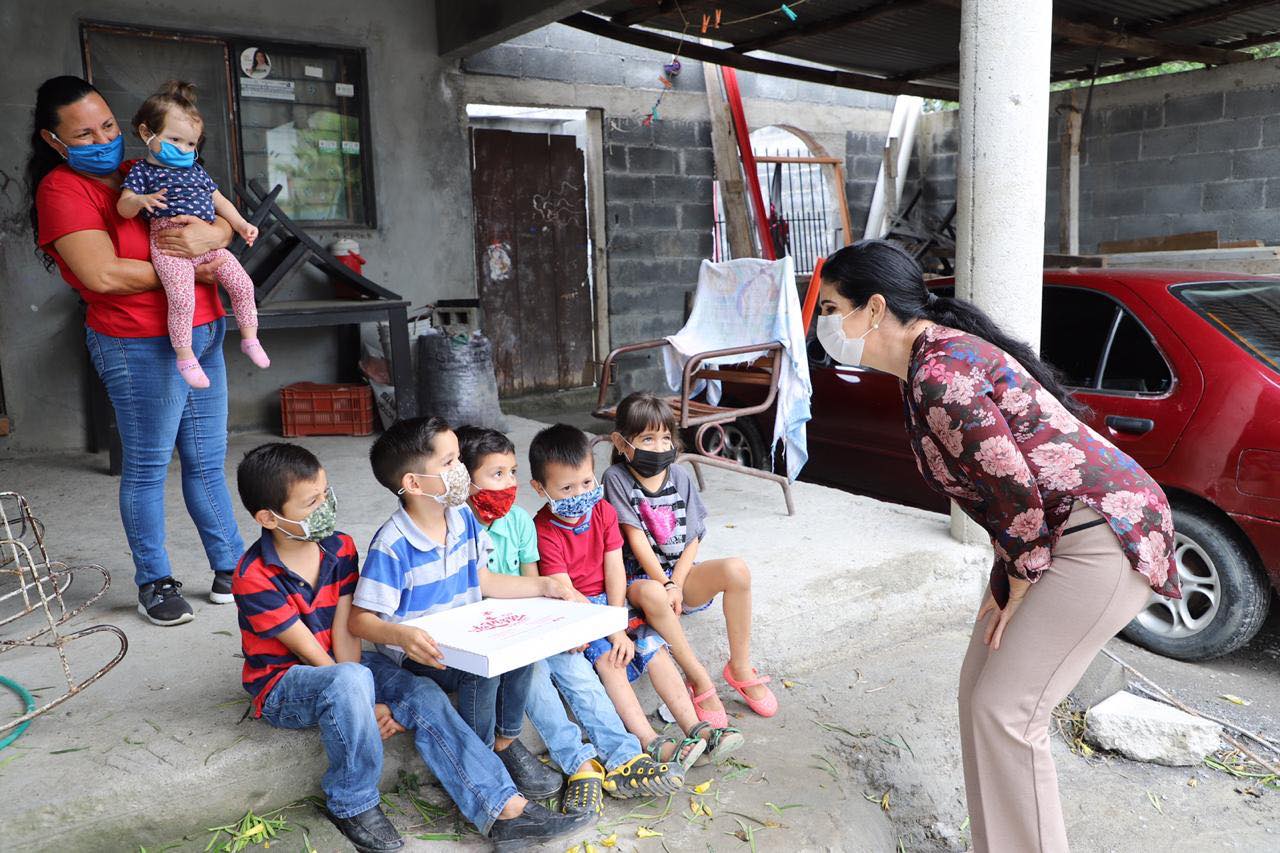 Allende.- Tras el apoyo para la “Alianza por la Alimentación de Allende”, hoy la Alcaldesa Patricia Salazar acompañó al personal del DIF Allende, donde realizaron la entrega de despensas, así como de una buena cantidad de pizzas donadas por el empresario Cristian Márquez para las niñas y niños del municipio.