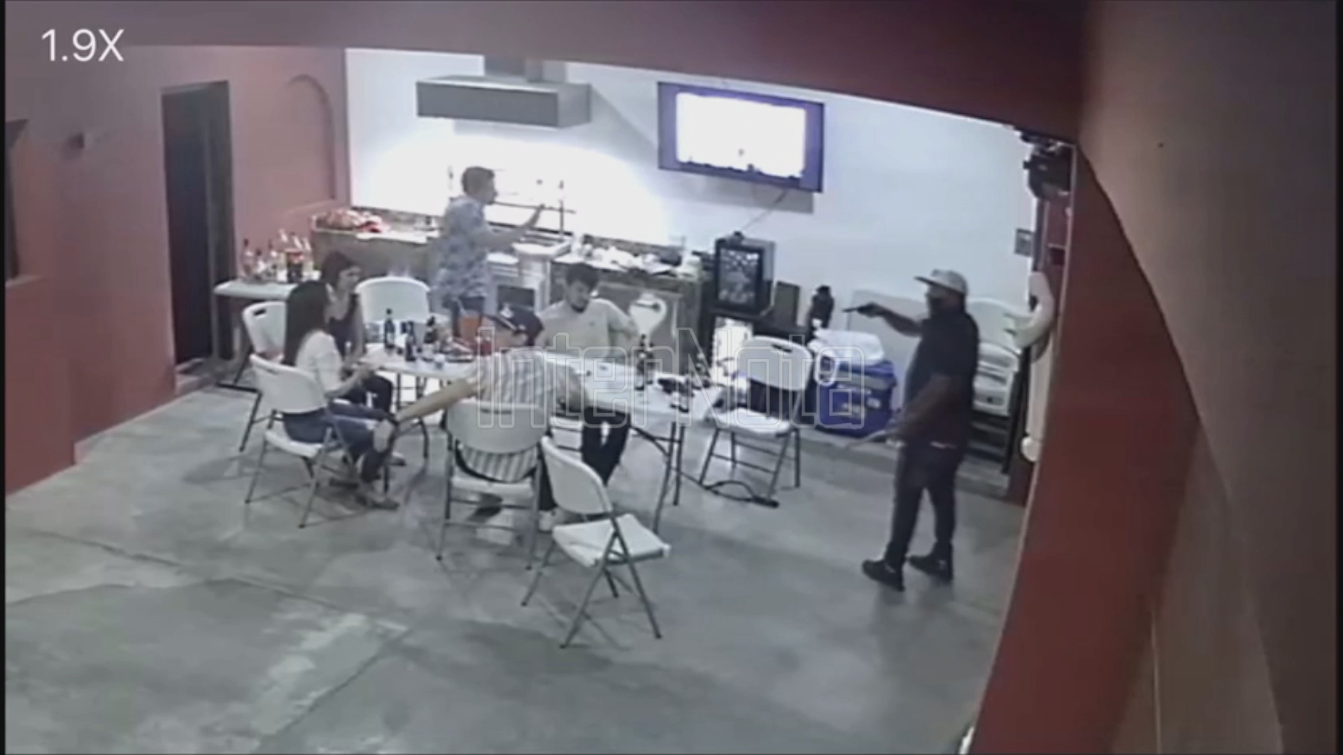 En un video de cámaras de seguridad se puede observar como el hombre los empieza a amenazar con un arma blanca, tiempo más después uno de las victimas al querer retirarse del lugar, el inesperado visitante saco un arma de fuego y comenzó a apuntar, sin embargo, otra persona que se encontraba en el lugar pudo despojar las armas, entre el forcejeo recobro la pistola y comenzó a hacer algunas detonaciones para luego darse a la fuga.