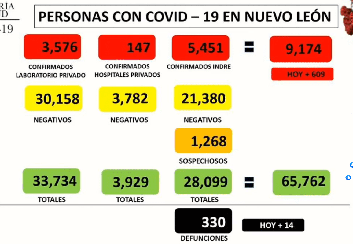 Nuevo León. – El día de hoy se regiostraron 609 nuevos casos de COVID-19 en Nuevo León, así lo informó...