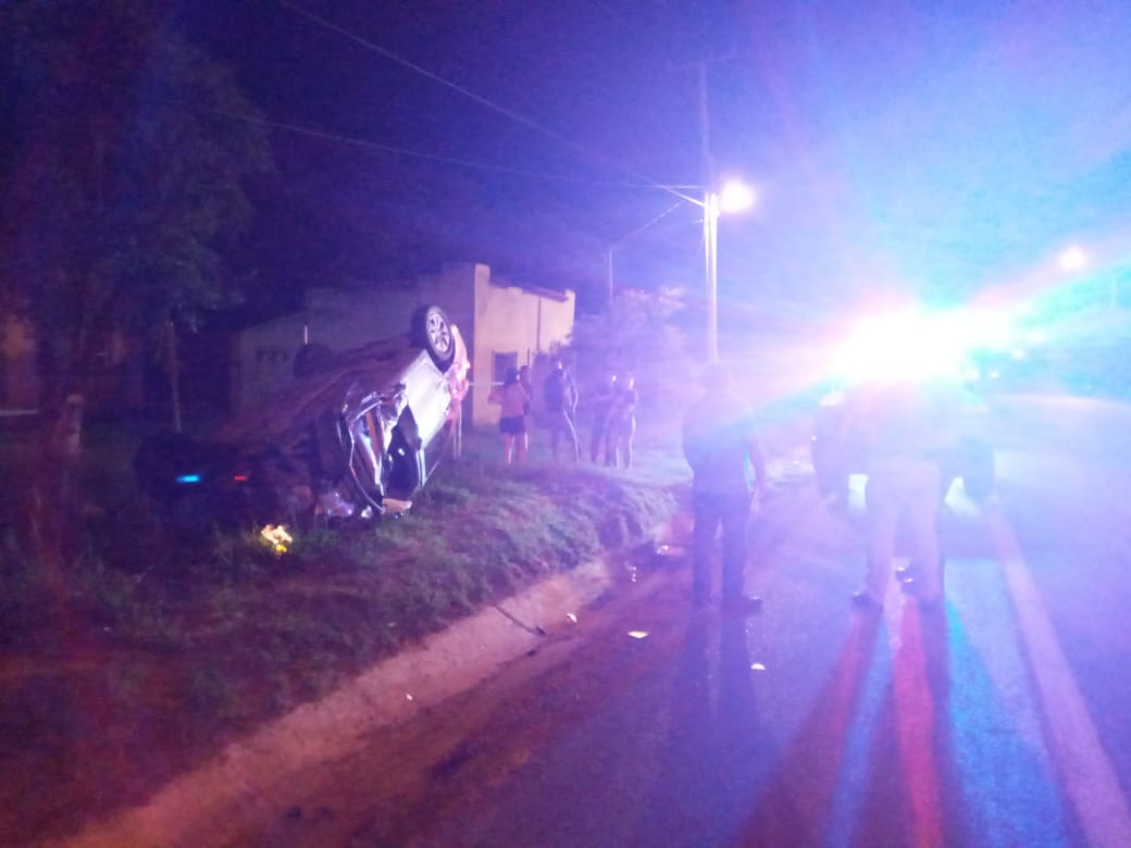 Montemorelos. – Un accidente vial se registro durante la madrugada del día de hoy a la altura de la Comunidad Canoas, lugar donde un vehículo presuntamente al perder el control termino volcado.