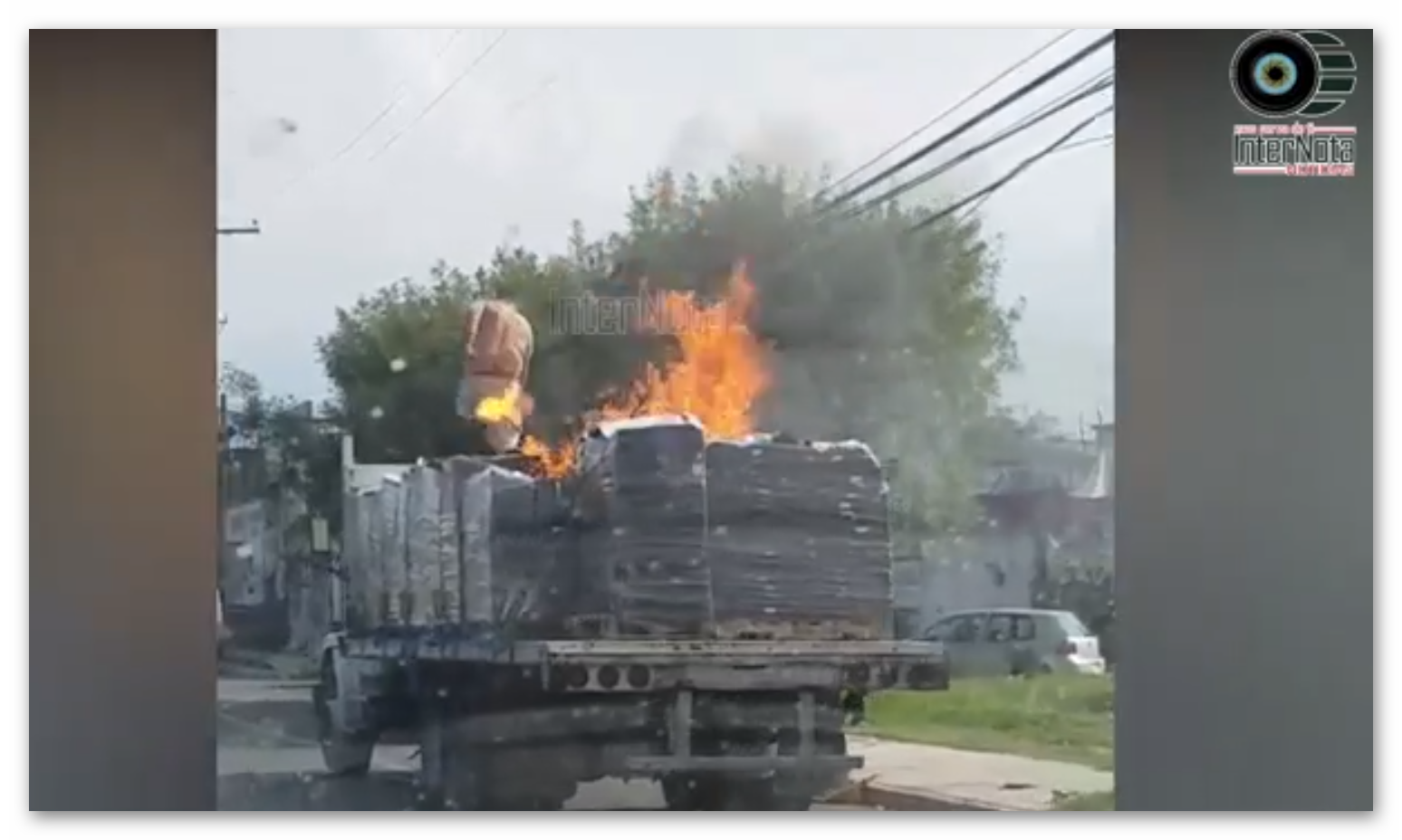 INTENTA APAGAR INCENDIO DE CARGA DE CARTÓN EN CAMIÓN; SE PRENDE MÁS.