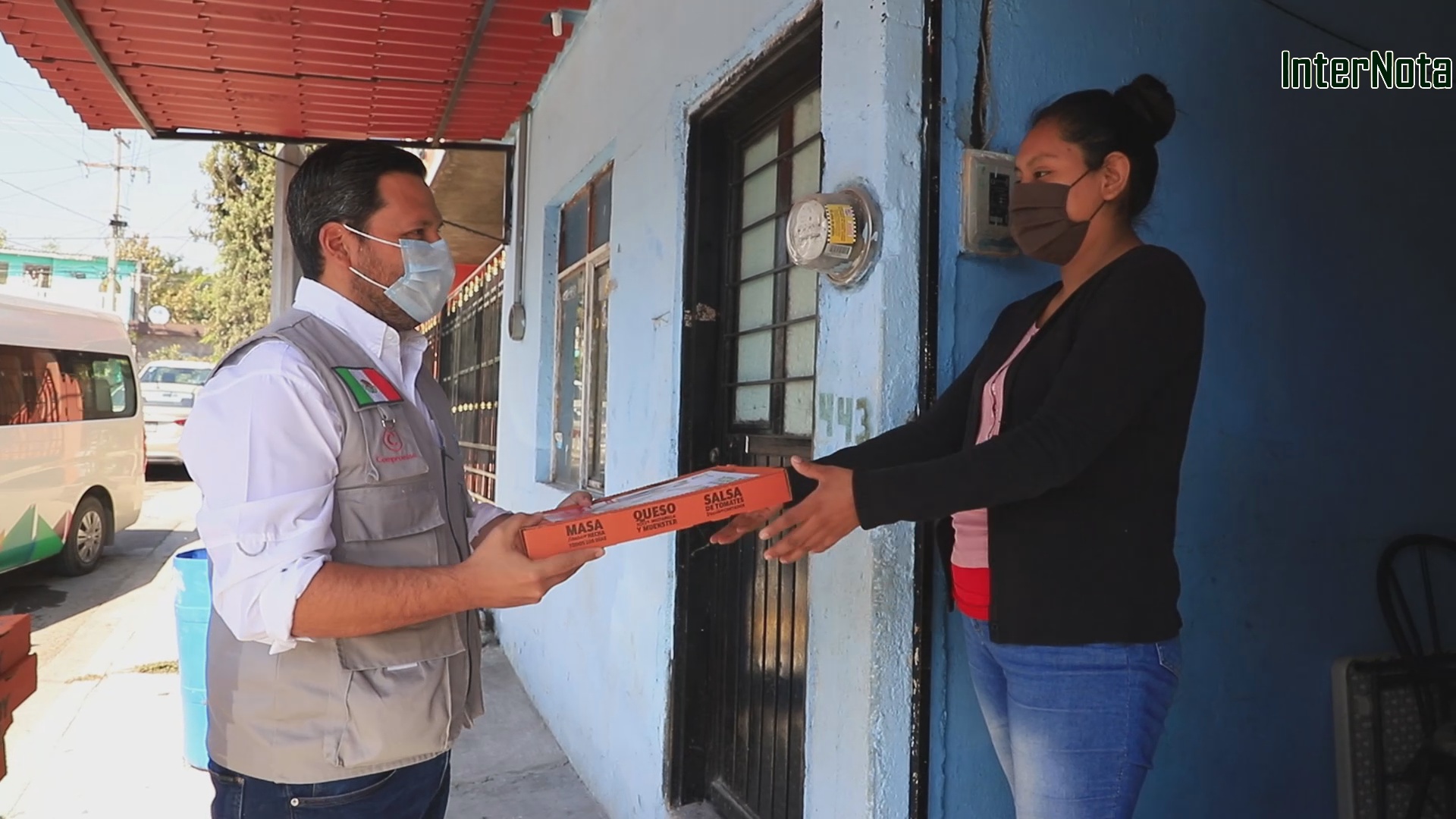 LLEVAN PIZZAS Y CUBREBOCAS A FAMILIAS DE TIERRA PROPIA