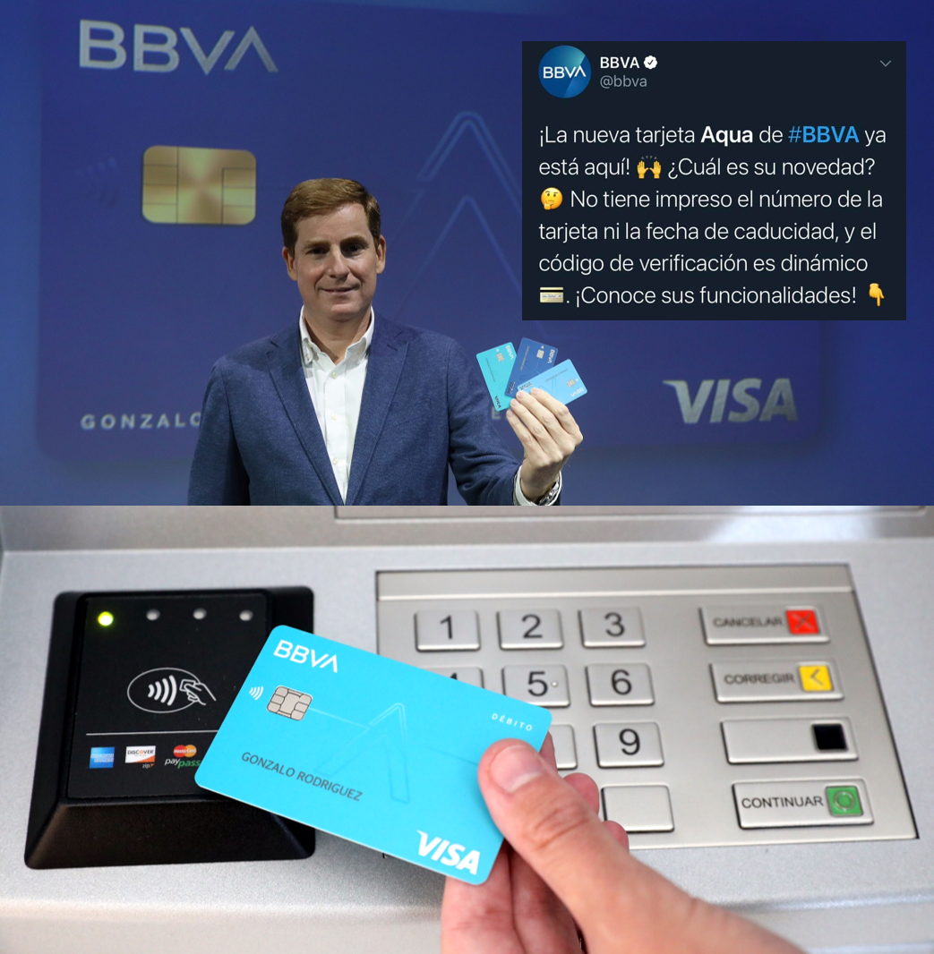 BBVA presentó su nueva tarjeta Aqua, la cual tiene la peculiaridad de que no tiene ninguna información además del nombre del cliente.