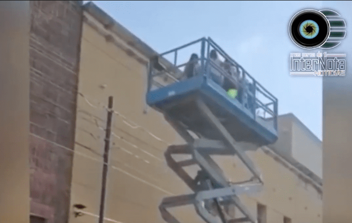 RENTAN GRÚA MUJERES PARA VER A SU AMIGA HOSPITALIZADA DESDE LA VENTANA.