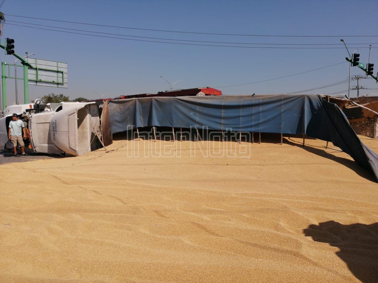 Guadalupe. – Una unidad de carga pesada la cual transportaba trigo terminó volcado luego de ser impactado por el ferrocarril...