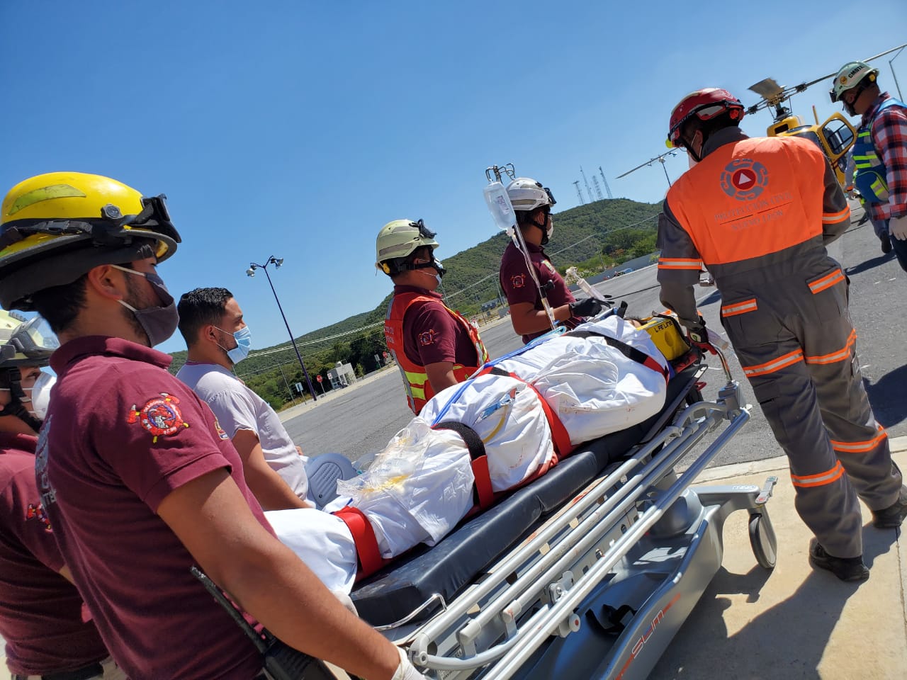 TRASLADAN EN HELICOPTERO A HOMBRE QUIEN PRESENTO FUERTES LESIONES TRAS ACCIDENTE EN MOTOCICLETA.