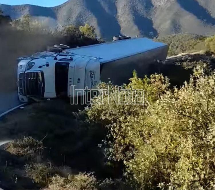TRAÍLER VUELCA EN CARRETERA GALEANA A ITURBIDE NL Iturbide. - Esta mañana se presentó un accidente vial en donde un...