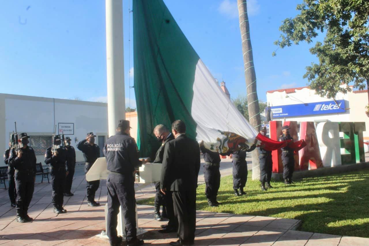 REALIZAN LOS HONORES Y EL IZAMIENTO DE BANDERA POR EL 110 ANIVERSARIO DE LA REVOLUCIÓN MEXICANA EN HUALAHUISES, N.L.