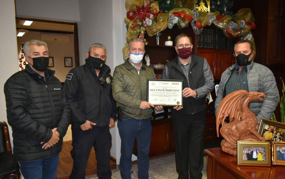 CANACAR ENTREGA RECONOCIMIENTO A ALCALDE Y SECRETARIO DE SEGURIDAD PÚBLICA. Montemorelos. – El Alcalde Luis Fernando Garza y el Secretario...