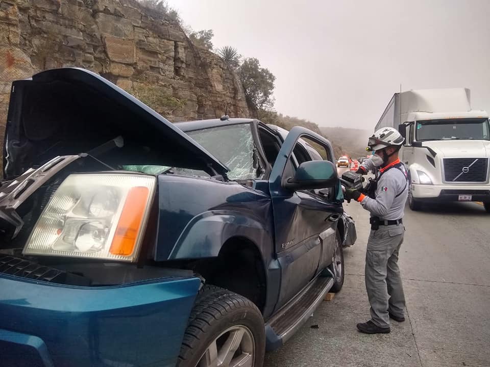 A los hechos arribaron elementos de Protección Civil Nuevo León y Cruz Roja quienes hasta el momento se encuentran realizando maniobras con equipo hidráulico para liberar a una persona la cual termino prensada.