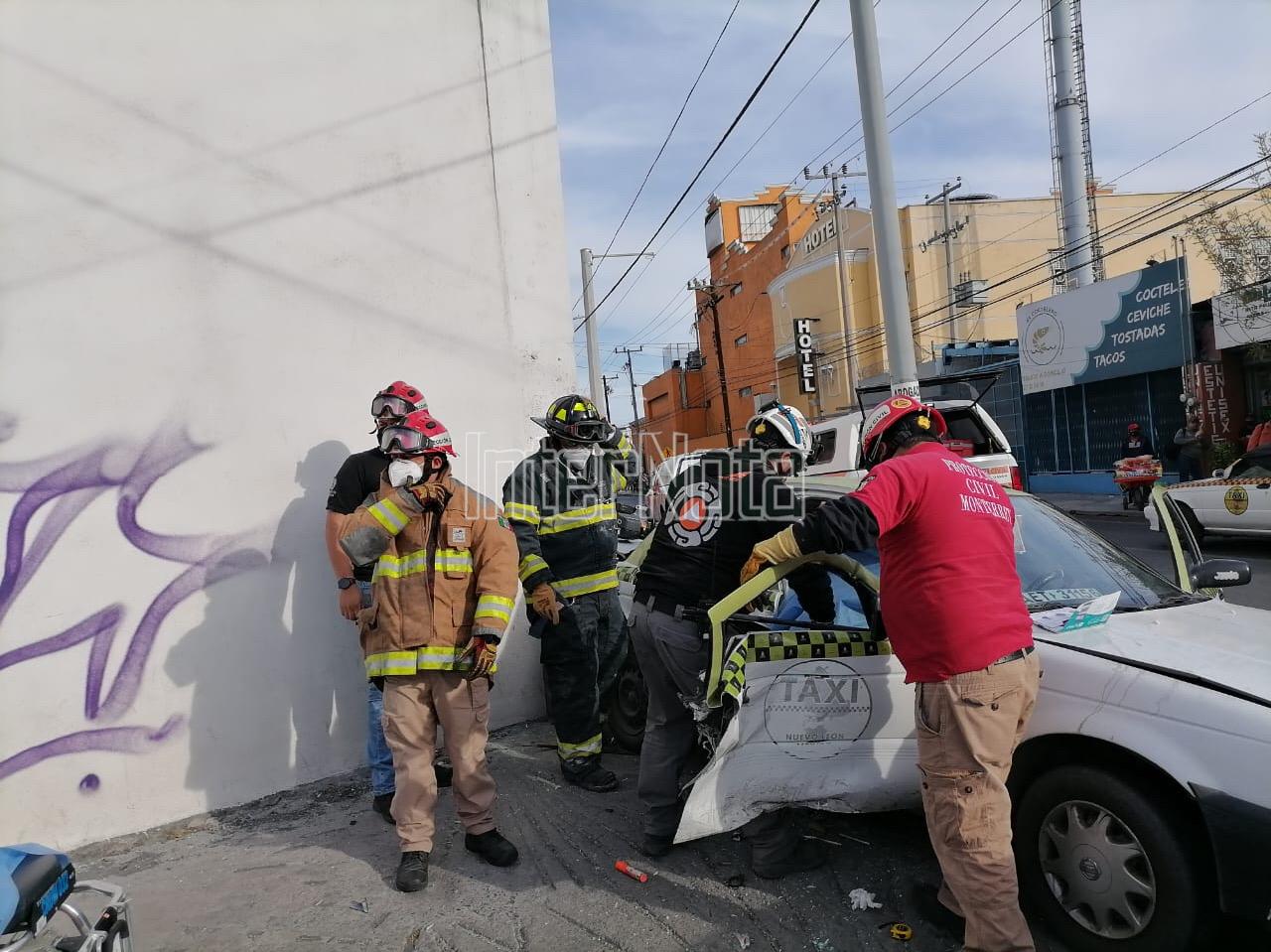 QUEDA MUJER ATRAPADA EN TAXI TRAS FUERTE ACCIDENTE EN EL CENTRO DE MONTERREY.