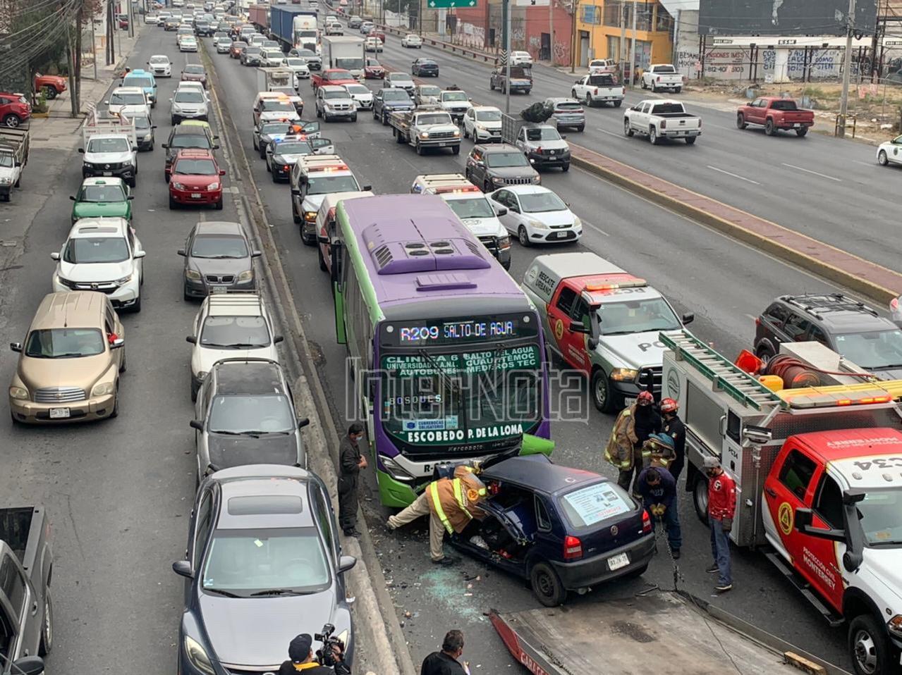 Monterrey_ Un aparatoso accidente vial se registró cuando un vehículo perdió el control brinco el camellón central y termino incrustándose...