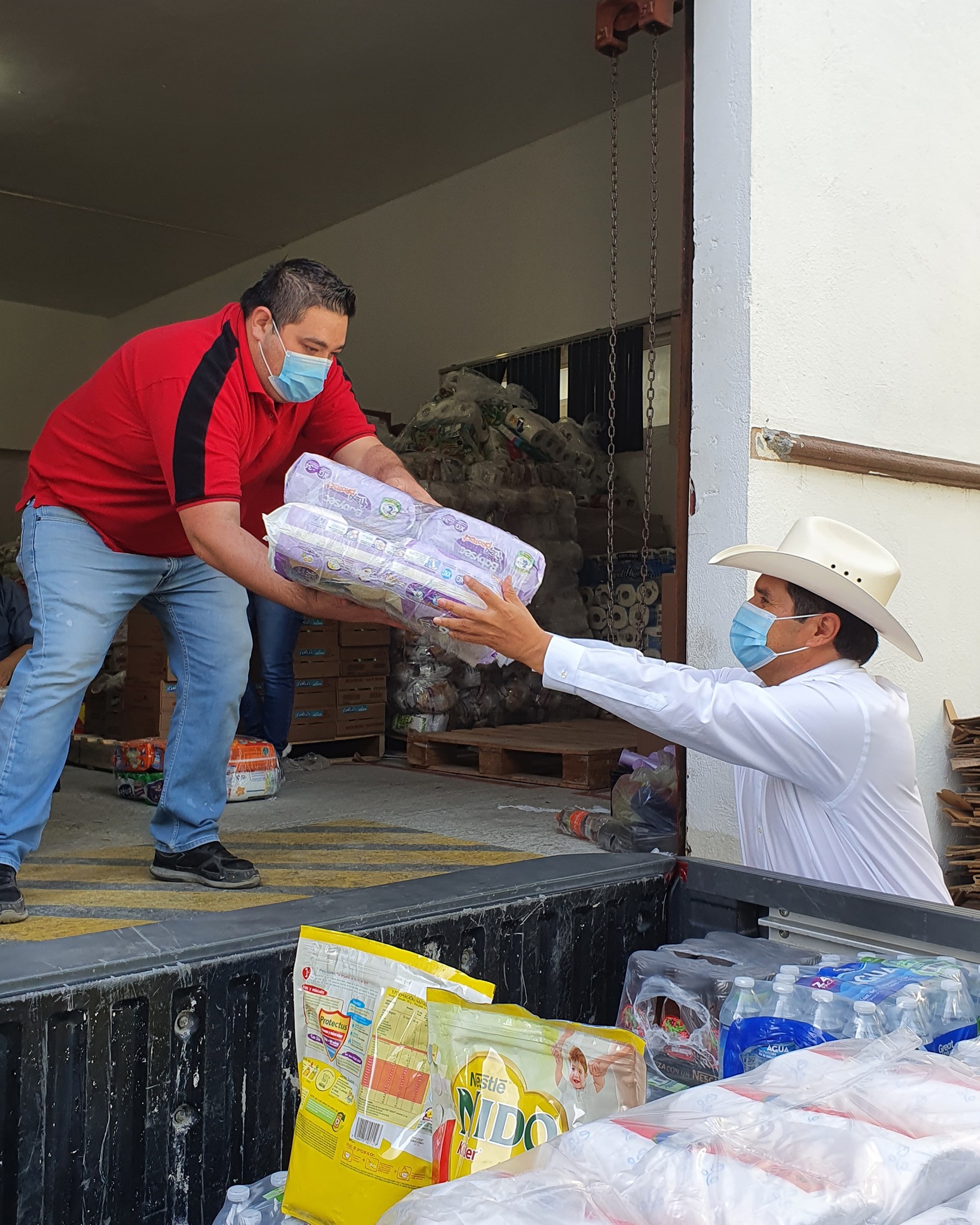 El candidato del pri a la diputación federal del distrito 9, Juan Espinoza Eguía hizo entrega de apoyos para las personas afectadas del incendio que se registró en la sierra de Santiago, N.L. con límites de Arteaga.