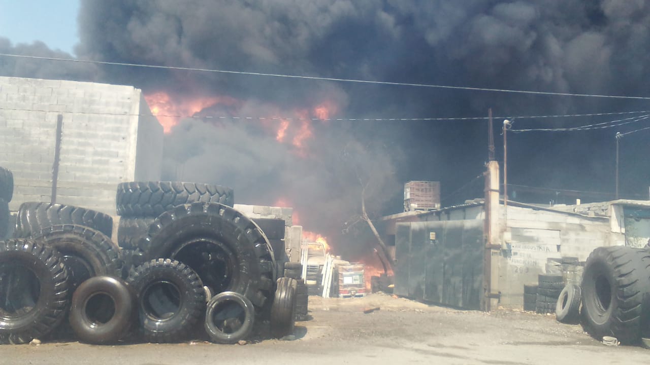 CIÉNEGA DE FLORES. - SE REGISTRA FUERTE INCENDIO EN EL INTERIOR DE UNA BODEGA DE LLANTAS, AUTORIDADES SE DIRIGEN AL...