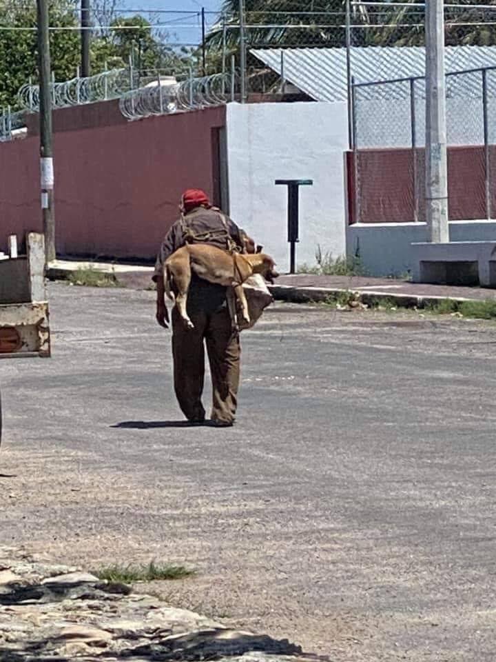 CARGA SU MASCOTA PARA PROTEGER SUS PATITAS. Un hombre de la tercera edad se hizo viral en las redes sociales...