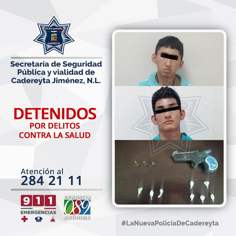 DETIENEN A DOS CON ARMAS DE FUEGO, CARTUCHOS Y DROGA, CADEREYTA NL