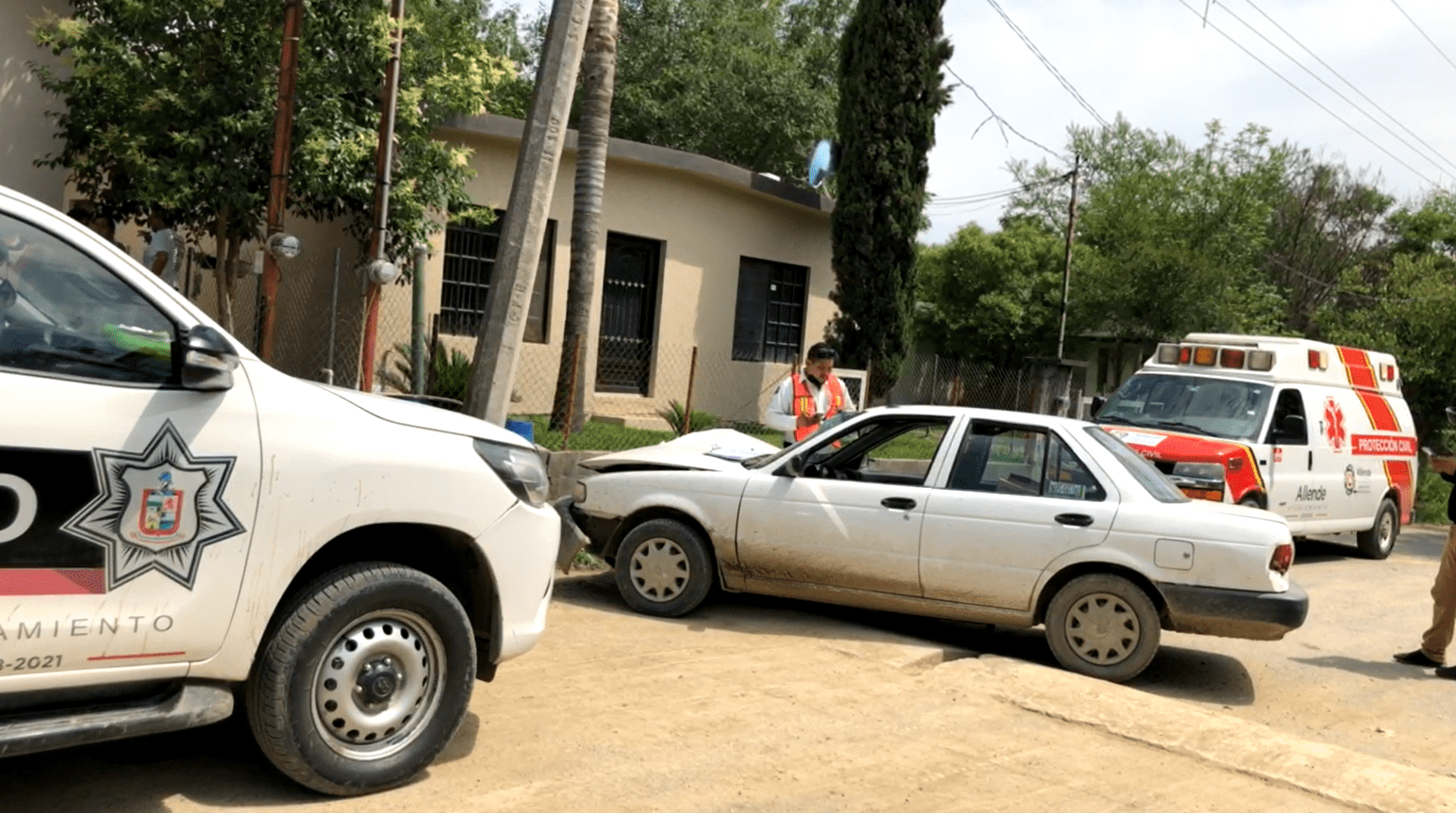 Allende. – Un hombre quien se impactó contra un poste, señala ser víctima de un robo en la comunidad El Venado.
