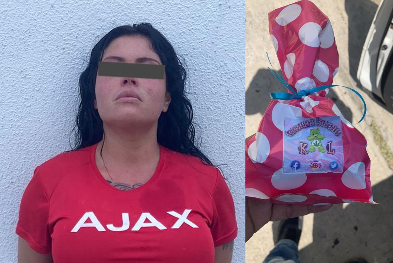 Al aproximarse a la sospechosa, encontraron que al interior de su bolsa traía dos bolsas con marihuana y tres más, que contenían galletas y brownies, estos etiquetados con la imagen de la cannabis. Jennyfer “N” de 25 años de edad fue puesta a disposición de autoridades.