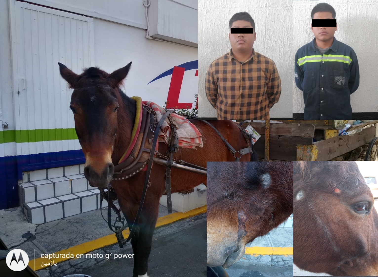En dicho punto, los elementos de Fuerza Civil realizaban un recorrido de prevención y vigilancia cuando se percataron de que los ahora detenidos, golpeaban al equino para que jalara la carreta y que, además, el animal presentaba una lesión en una de sus patas.