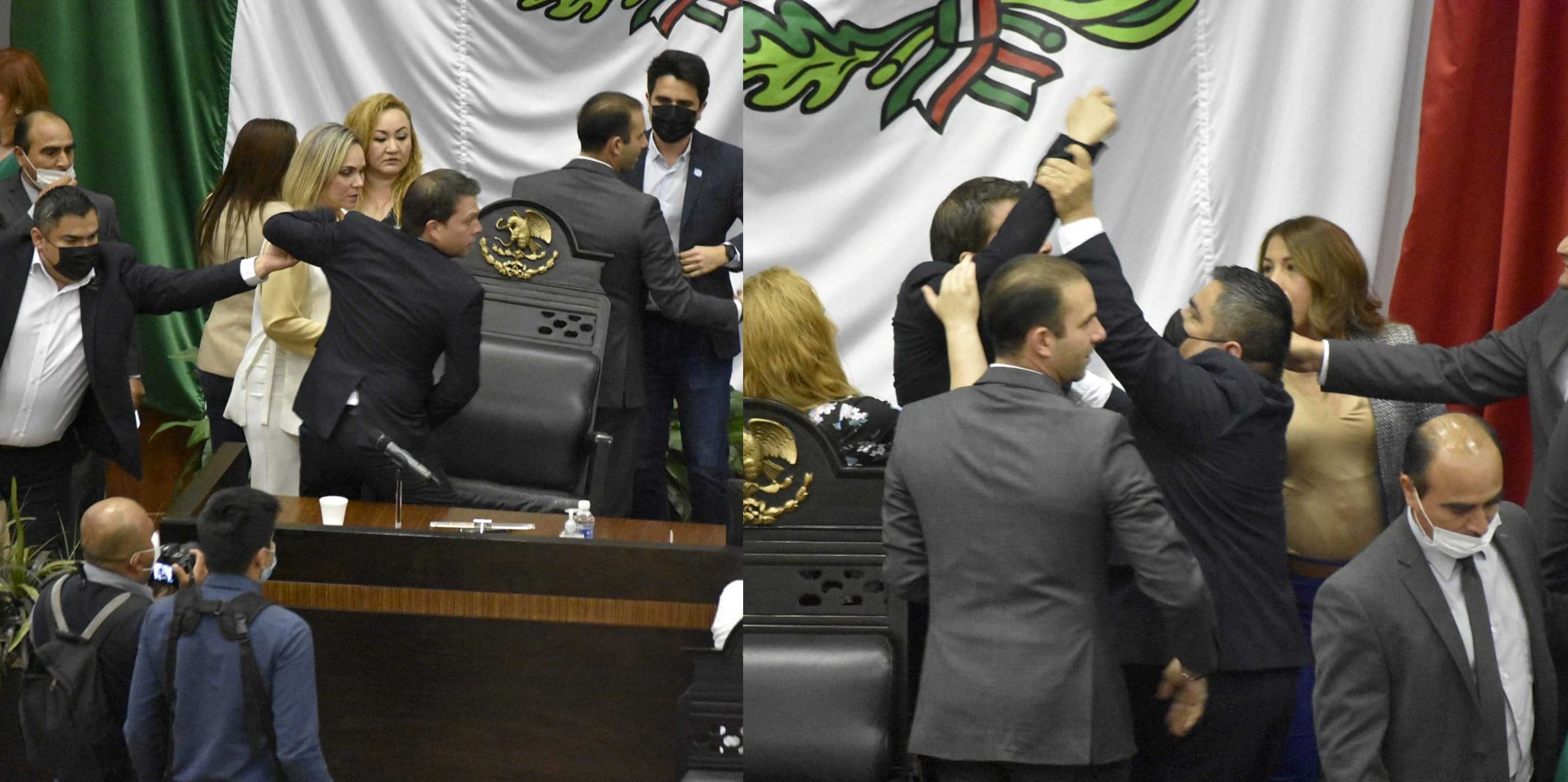 A EMPUJONES, GRITOS Y JALONEOS SE ENFRENTAN DIPUTADOS EN EL CONGRESO DE TAMAULIPAS.