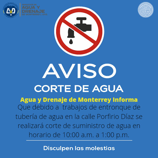 Aviso Importante CORTE DE AGUA EN EL MUNICIPIO DE HUALAHUISES N.L. Mas información en la imagen: