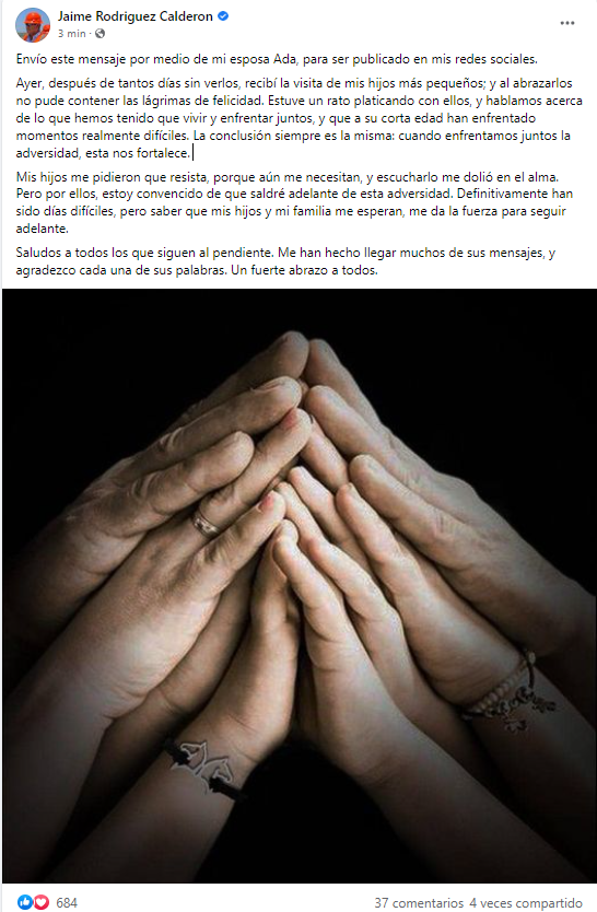 El ex mandatario estatal mando un mensaje por parte de su esposa para que fuera puesta a trávez de sus...
