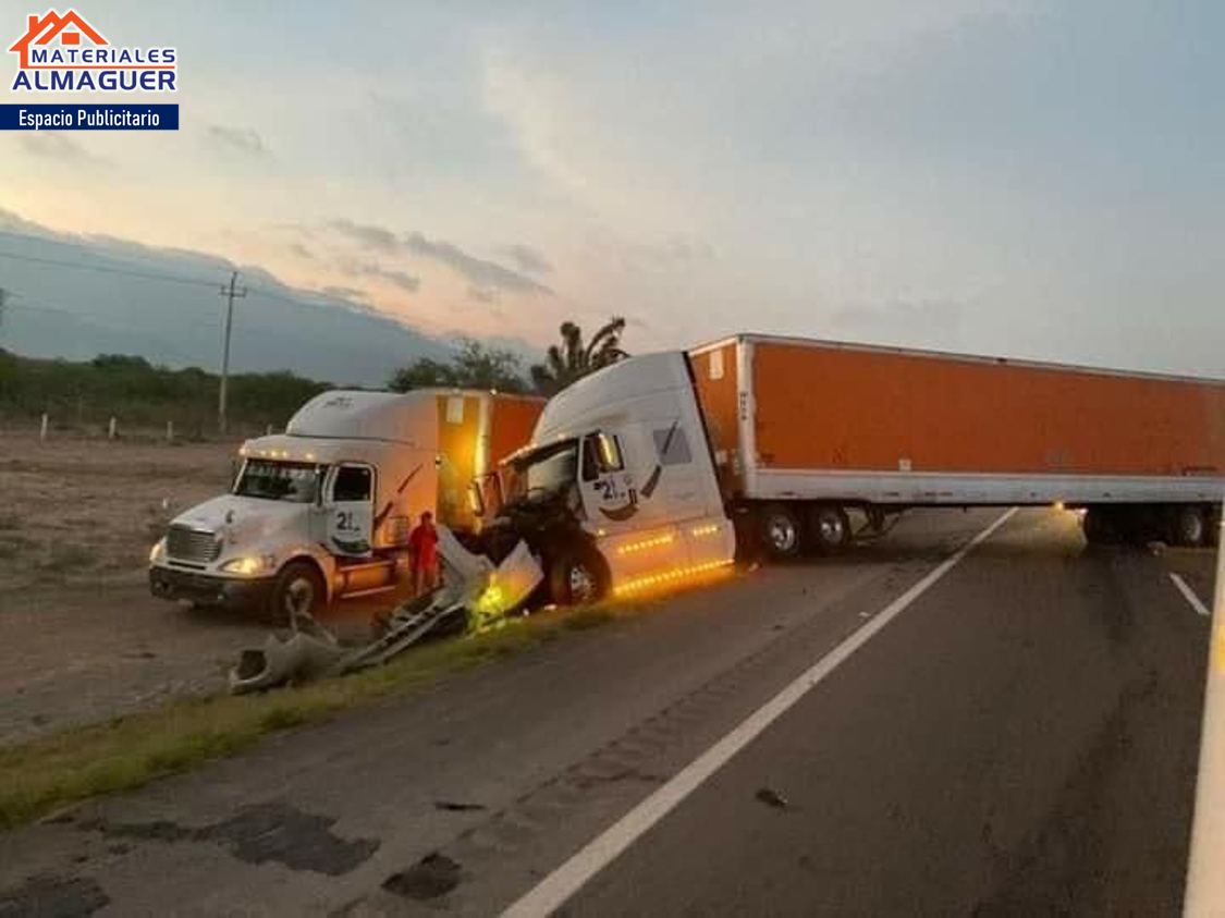 Dos tractocamiones participaron en un accidente vial en la carretera 57 al sur de Matehuala en donde según versiones una de las unidades de carga se estrello en la parte trasera de otro quedando atravesados en los carriles.