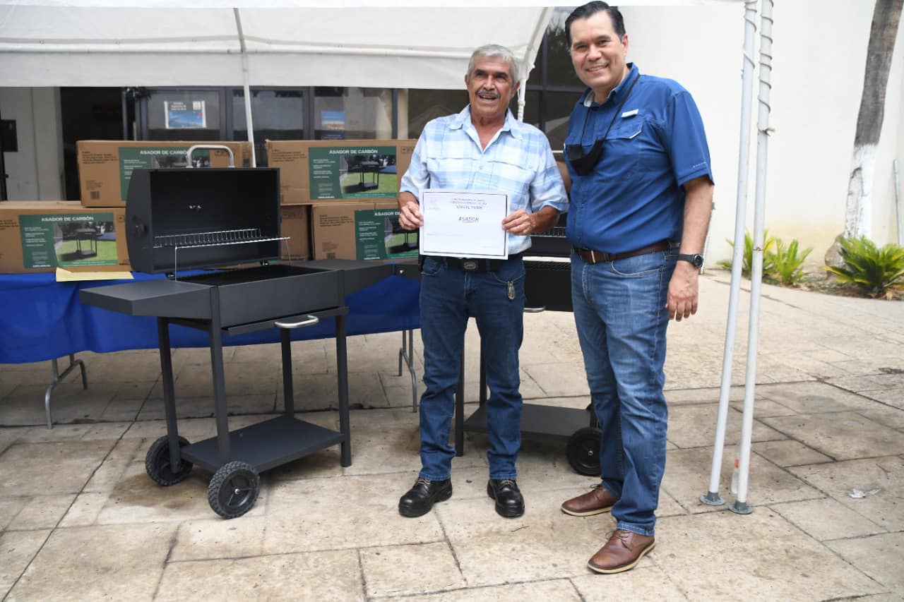 Linares. – Esta tarde, el alcalde Sergio Elizondo hizo entrega de los paquetes parrilleros, asadores y hieleras a los padres de familia que salieron sorteados en la rifa que se llevo a cabo para festejar en grande el Día del Padre.